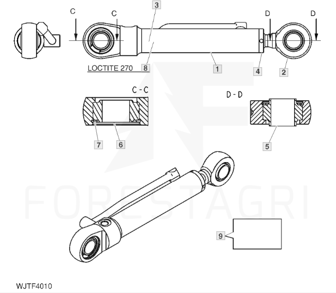 Bearing used in the hydraulic cylinder of the lower trimming knives and the cylinder of the feed rollers. The bearing effectively transfers high radial and axial loads and compensates for misalignment, which is crucial in systems exposed to intense loads, vibrations, and variable forces during the felling and processing of wood.