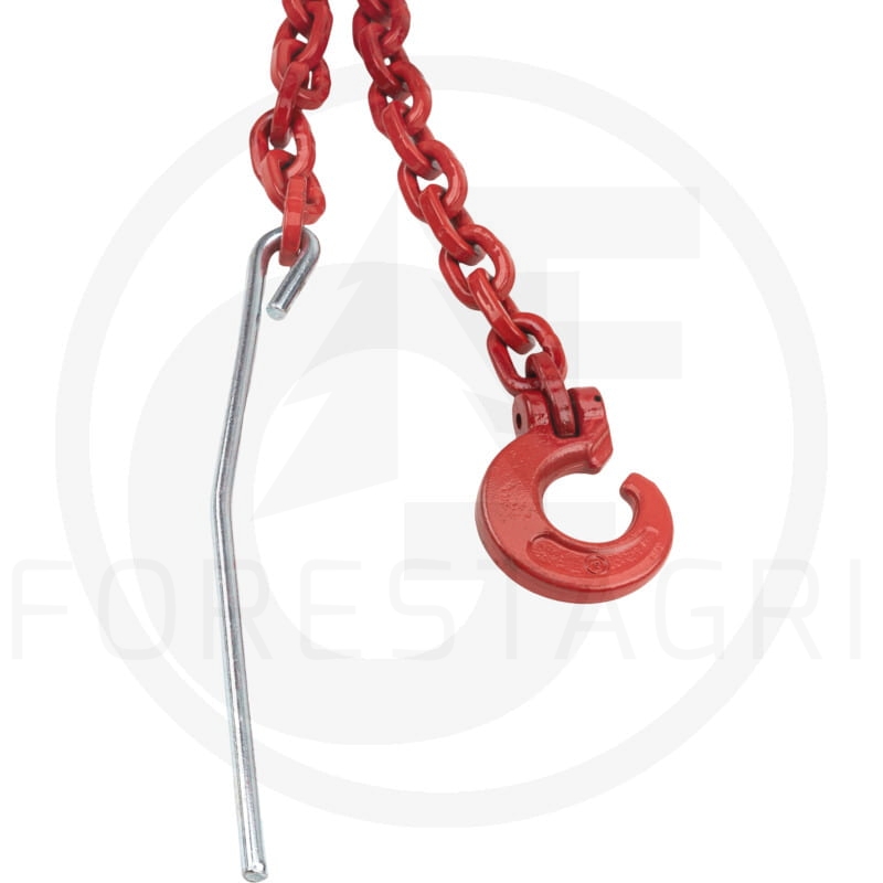 It is used to attach the tree to a winch, allowing efficient transport of the wood over short distances, such as from the felling site to the storage area. The hook and needle make it easier to fasten and secure the chain around the trunk, increasing speed and convenience at work.