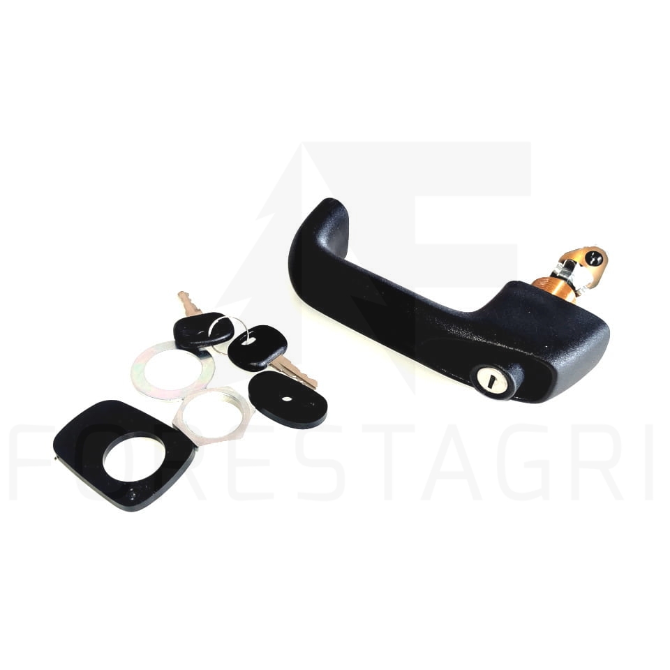 Door handle for E-series machines, designed for durability and ease of use in tough working conditions. The set includes a key set, ensuring secure access to the machine’s cabin. High-quality materials and precise craftsmanship guarantee long-lasting reliability and strength.