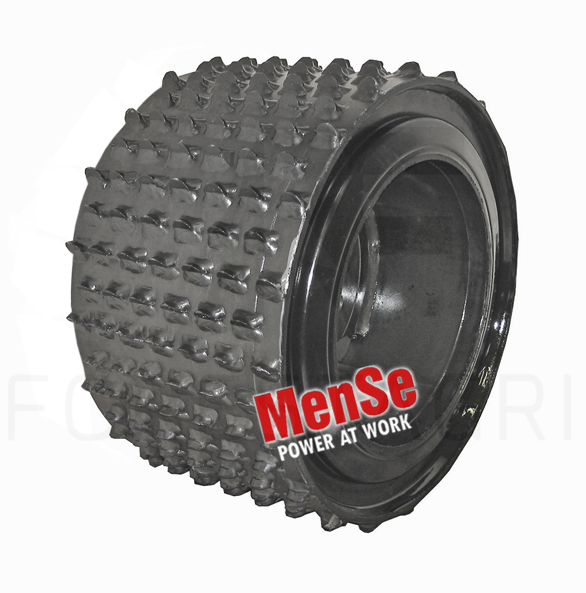 Amortyzowane rolki z gumowymi elementami redukują hałas i drgania w kabinie harvestera, tłumiąc wibracje i zwiększając komfort operatora. Pozytywne efekty amortyzacji gumowej są szczególnie widoczne podczas pracy z twardymi gatunkami drewna. Tłumienie drgań zwiększa precyzję chwytu i poprawia trakcję. Asymetryczne kolce wykonane z odpornej na zużycie stali zapewniają maksymalną przyczepność podczas zasilania bagażnika.