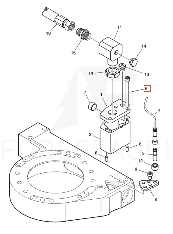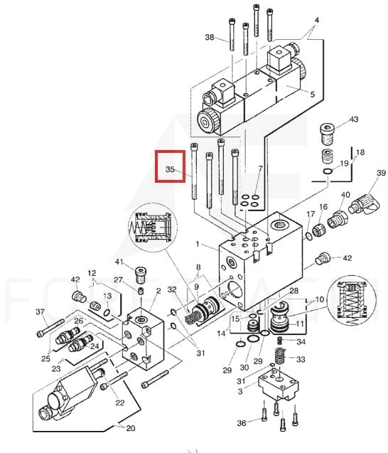 Bolt used for mounting hydraulic blocks and saw sensor housing.