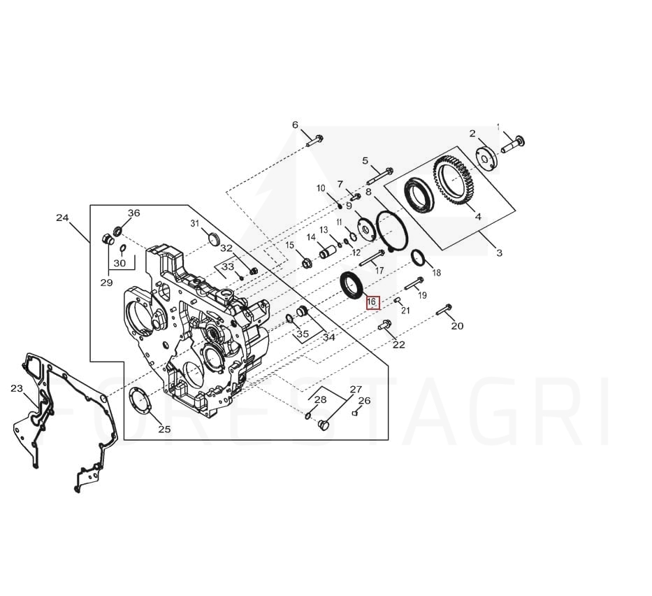 The crankshaft front seal is used to prevent oil leaks from the engine by sealing the area where the crankshaft exits the engine block. This type of seal is especially important in forestry machines, such as forwarders and harvesters, as it ensures proper lubrication inside the engine, protecting key components from wear and contamination.