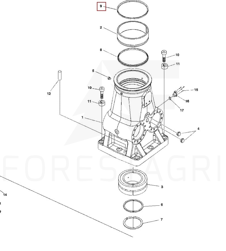 V-ring seal mounted in the base of the crane for forestry machinery.