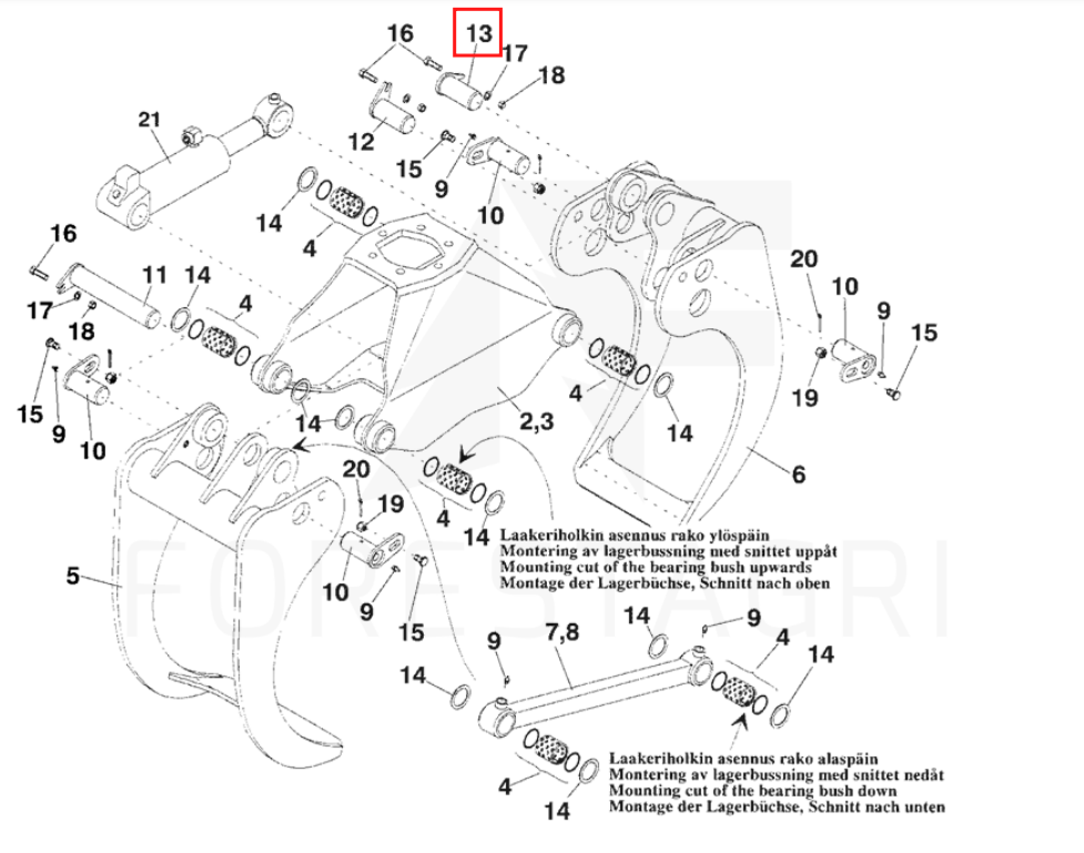 The Loglift FX25 and FX35 grapple pin is a key part used to connect the grapple body to the arm. Made from durable materials, it guarantees long life and reliable performance even in tough conditions. Perfectly suited for Loglift FX25 and FX35 models, it ensures precise fit and safe use. The pin is resistant to mechanical damage and corrosion, making it an essential component for maintenance and repair of forestry machinery