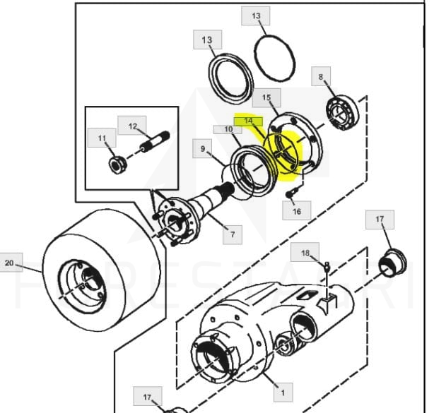 The seal F055508 is a key component designed for installation under the external roller motor shaft in forestry machines. Its main function is to ensure tightness, which is essential for protecting internal mechanisms from contaminants and fluid leaks.