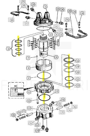 The seal kit F005622 is a specialized seal set designed for the GV10 rotator, ensuring maximum performance and reliability in operation. The kit includes high-quality seals that effectively protect against fluid leaks, which is crucial for the proper functioning of the rotator.