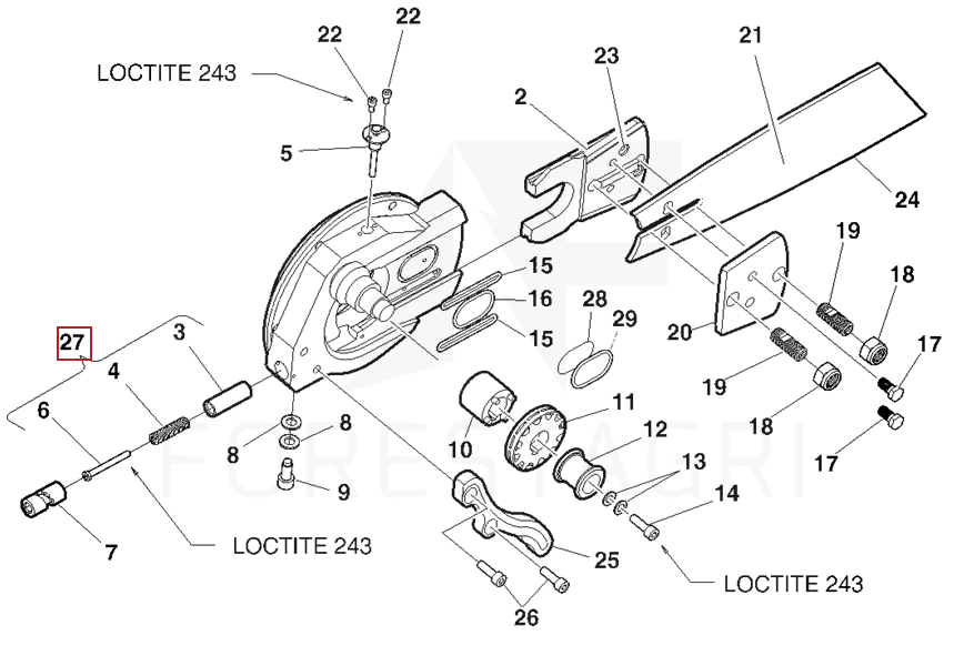 Spring F063527 is a key component in the OM saw assembly. It is responsible for the correct operation of the chain tensioner in systems with manual tensioning.