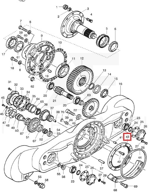 A used part with catalog numbers F035872, F051602, applied in the differential mechanism of forestry machines.