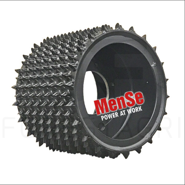 Kolce rolki podającej są wykonane z odpornej na zużycie stali. Asymetryczny kształt zapewnia maksymalną przyczepność podczas podawania pnia do przodu. Żywotność stalowej rolki podającej można łatwo wydłużyć, korzystając z usługi regeneracji MenSe. Stalowa rolka podająca jest podstawową, ekonomiczną i lekką opcją.