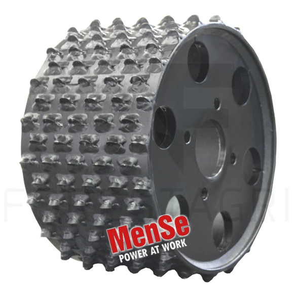 Kolce rolek podających są wykonane z odpornej na zużycie stali. Ich asymetryczny kształt zapewnia maksymalną przyczepność podczas podawania pnia do przodu. Żywotność stalowej rolki podającej można łatwo wydłużyć, korzystając z usługi regeneracji MenSe. Stalowe koło podające to podstawowa, ekonomiczna i lekka opcja.