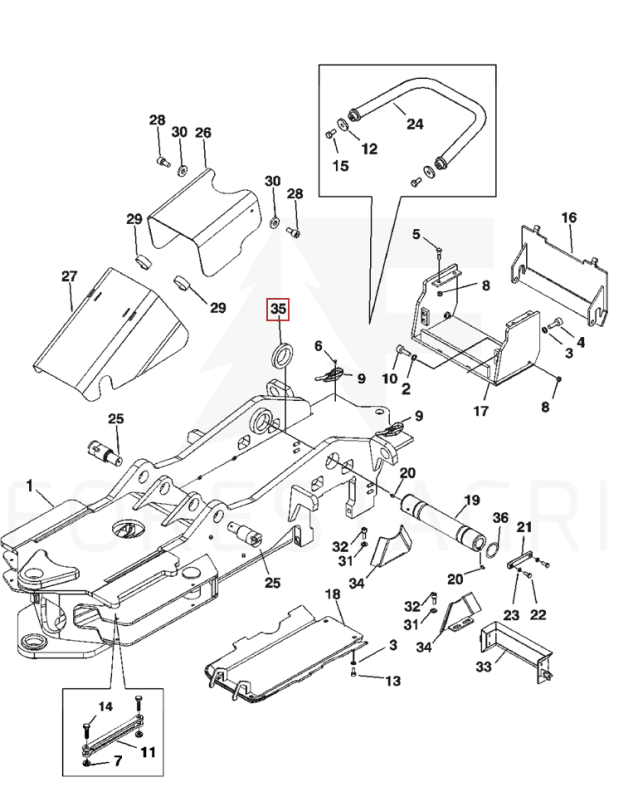 Washer for the front frame cover in the 1270D forestry harvester.