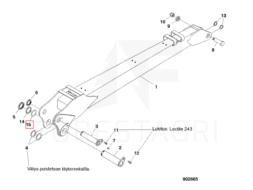Spacer washer that adjusts axial play, e.g., in the crane mast.