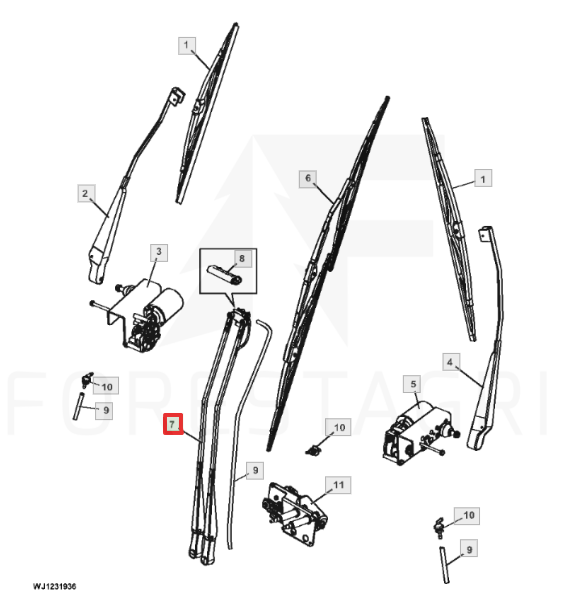 Wiper arm designed for John Deere forestry machines. Made of durable materials, it ensures the proper operation of the wiper AL207461.