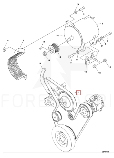 The multi-ribbed belt drives the auxiliary devices of the motor, primarily the alternator and the air conditioning compressor.
